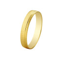 Aliança fabricada en or de 18 kts de 3.5 mm d'ampla i 0.8 mm d'ampla. Acabat setinat amb una fina línia brillant a un costat. Pesa 2.6 grams en mida 23.