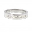 Anell de diamants en or blanc de 18 quirats amb 9 diamants que fan un pes de 0.27ct, estan disposats a muntura carril formant una bonica mitjana aliança, mesura 4.3 mil·límetres d'ample per 2.4 d'alt a la part superior i el seu pes és de 5.6 grams. Presentat en estoig de regal i amb certificat de qualitat.