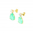Arracades fabricades en or groc de 18 Kts amb circonita a la part superior i un quars verd en forma de llàgrima penjant. Mesuren 22 mil·límetres de llarg i 10 d'amplada i una pedra d'onix a l'interior amb la imatge de medusa en or inserida, el tancament és a pressió. Pesen 4.7 grams.
