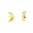 Bonics pendents fabricats en or de 18 Kts amb dues bandes creuades una d'elles amb circonites de talla princesa muntades en carril. Fan una amplada de 8 mil·límetres i 18 de llargada, pesen 5.8 grams i el seu tancament és omega.