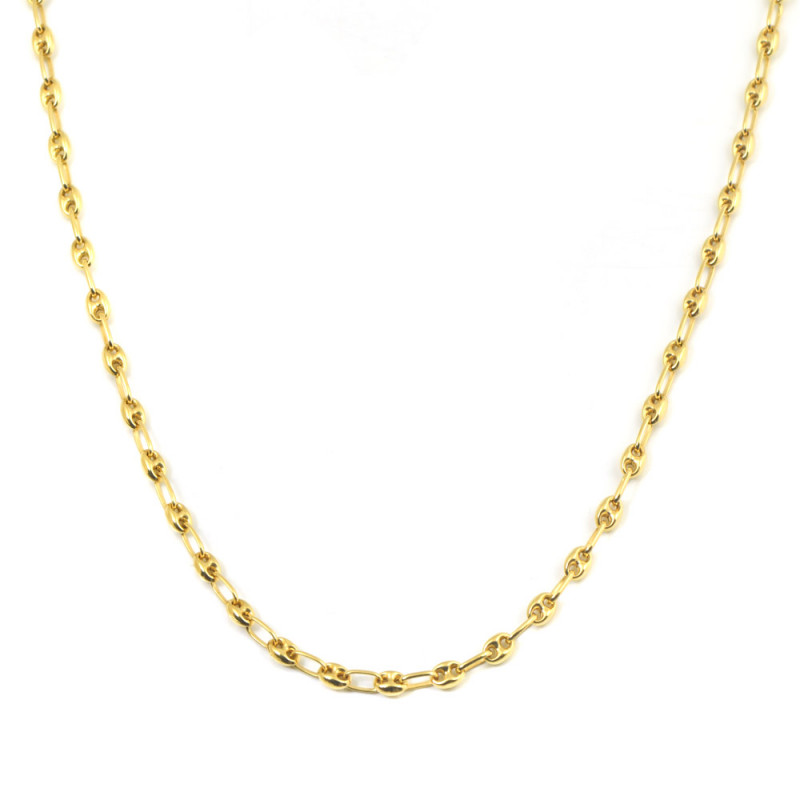 Cadena semi massissa amb baula calabrot fabricada en or de 18kts. Mesura 50 centímetres de llarga i 4 mil·límetres d'ampla. El pes és de 8.9 grams.