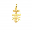 Creu de caravaca fabricada en or de 18 kts mesura 31 mm d'alt 16 d'amplada inclosa l'anella i el seu pes és de 2.4 grams.