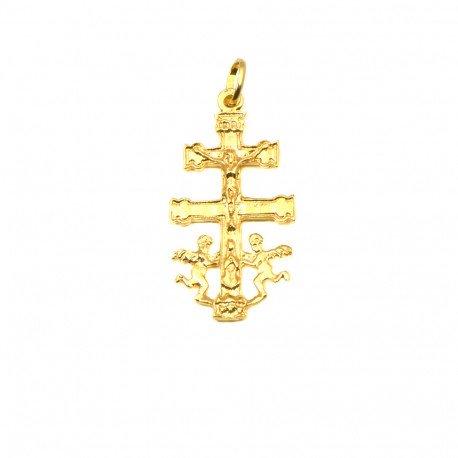 No oblideu de desar la vostra personalització per poder afegir-la a la cistellaCreu de caravaca fabricada en or de 18 kts mesura 31 mm d'alt 16 d'amplada inclosa l'anella i el seu pes és de 2.4 grams.