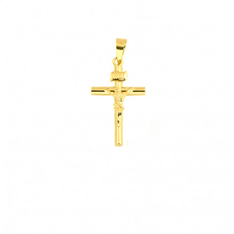 No oblideu de desar la vostra personalització per poder afegir-la a la cistellaCreu fabricada en or groc de 18 klts de canya rodona llisa d'acabat brillant amb imatge de crist al centre, mesura 29 mil·límetres d'alta incloent l'anella i 14 d'ampla el pes és de 0.7 grams.