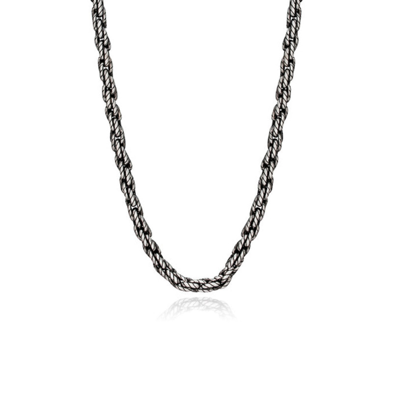 Llueix espectacular amb aquesta cadena de cordó d´home d´acer color negre. Dissenyada per als qui aprecien la bellesa i el detall. Amb materials seleccionats meticulosament i un disseny innovador, aquesta joia promet ser un complement imprescindible a la teva col·lecció, ideal per realçar qualsevol vestit amb un toc de distinció. Llarg 60 cm