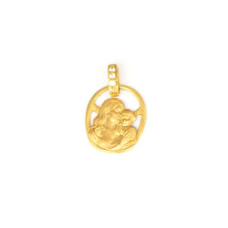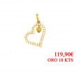 penjoll d'or groc 18 KTS amb forma de cor, aquest penja per un dels seus costats i la part exterior va pavonada de circonites subjectes totes elles per urpes, a la part superior penja un petit cor. Mesura 11 mil·límetres d'ample i 26 d'alt incloent la seva vàlua. Pesa 0.6 grams.