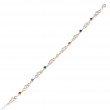 Polsera de plata de llei rodiada composta per múltiples circonites unes blanques i altres multicolor encastades en muntura xató i de 5 mil·límetres d'ample. La polsera fa un llarg de 17.5 centímetres adaptable a 20.5 gràcies a la cadena final, tanca de mosquetó.
