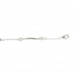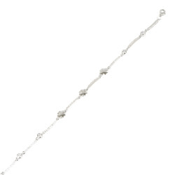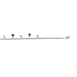 Polsera de plata de 1a llei amb peces allargades amb circonites i tres trèvols intercalats al centre, mesura 6.5 mil·límetres d'ampla i 17.5 centímetres de llarga més quatre decadena d'allargat final. El tancament és de mosquetó.