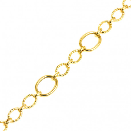 No oblideu de desar la vostra personalització per poder afegir-la a la cistellaPolsera fabricada en or de 18 kilates amb baules de dues diferents mides algunes de les quals tenen un bonic gravat lapidat, mesura 20 centímetres de llarg i 17 mil·límetres d'amplada, el seu tancament és de tipus flotador i pesa 6.4 grams.