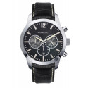 Disseny cronògraf amb caixa d'acer, corretja de pell boví negra, moviment de quars, vidre mineral, submergible 10 ATM.