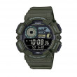 Rellotge Casio digital XXL verd per a cavaller. Fabricat amb resina de color blau i unes dimensions de caixa de 50 mm aproximadament. Pantalla digital amb números grans, bateria de llarga durada (10 anys), alarmes, il·luminació, cronòmetre i resistència a l'aigua de 100 metres.