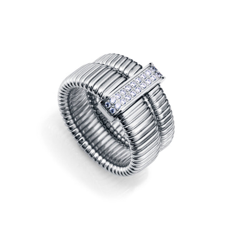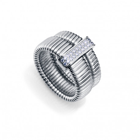 Anillo doble de acero de la colección Laura Escanes para mujer, con un sofisticado diseño tubogas adornado con circonitas blancas. Este anillo combina elegancia y modernidad, aportando un toque de brillo sutil que lo hace perfecto para cualquier ocasión. Su diseño versátil permite adaptarlo a diferentes estilos, desde looks diarios hasta conjuntos más formales.