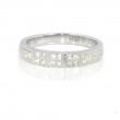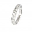 Anillo de diamantes en oro blanco de 18 kilates con diamantes de talla princesa y brillante que forman un bonito diseño, los diamantes de talla princesa están situados en la parte central con montura al aire en bisel y acompañados a ambos lados por los de talla brillante. Los diamantes hacen un peso de 0.41 Cts, hace un ancho de 3.3 milímetros por 3.2 de alto y su peso es de 3.3 gramos. Presentado en estuche de regalo y con certificado de calidad.