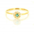 No olvide guardar su personalización para poder añadir al carritoAnillo fabricado en oro de 18 kilates , la piedra central de este bonito rosetón es una preciosa esmeralda de talla brillante rodeada en su totalidad por diamantes que hacen un total de 0.07 cts, es ideal para compromiso, el rosetón hace 6 milímetros de diámetro y una altura de 4 Su peso es de 0.8 gramos. Presentado en estuche de regalo y con certificado de calidad.