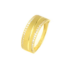 Anillo oro 18 kilates con bonito entretejido en mate y brillo, mide 12.6 milímetros de ancho y 4 de alto en su parte superior, su peso 4 gramos.