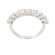 Anillo de diamantes de oro blanco de 18 kilates. Los nueve diamantes de su parte superior están engastados en garras, son de talla brillante y tienen un peso total de un quilate y son de calidad FVS. Mide 4 milímetros de ancho y su peso es de 2.6 gramos.