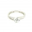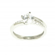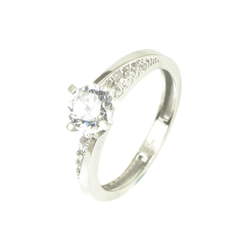 Anillo fabricado en oro blanco de 18 klts con una preciosa circonita la parte superior sujeta por cuatro garras, a ambos lados de ella la acompañan dos filas de circonitas colocadas tambien en garras, mide 8 milímetros de anchos en su parte superior y su peso es de 2.9 gramos.