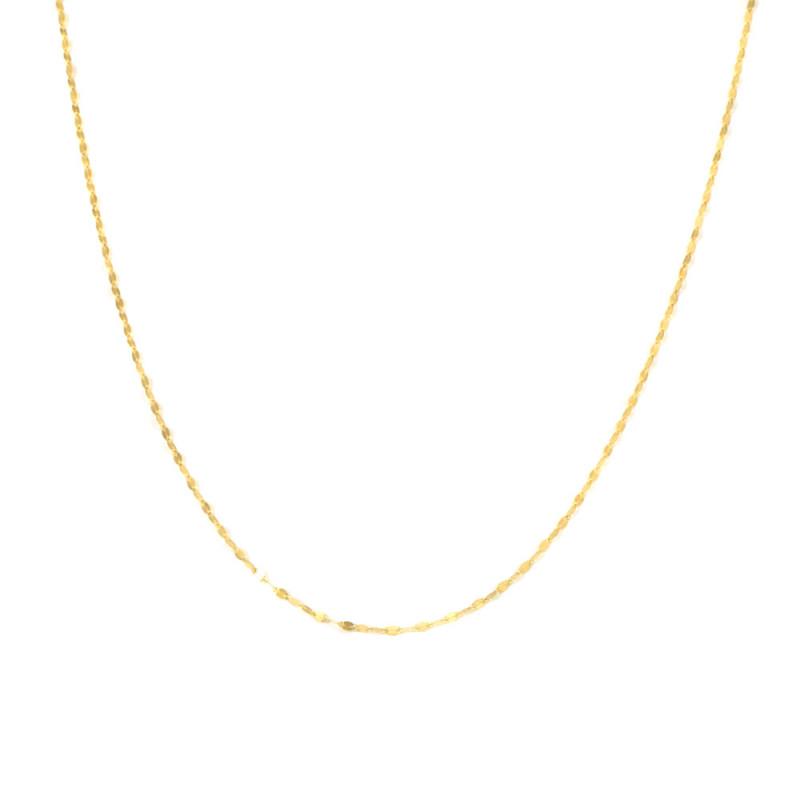 Cadena calabrote plana fabricada en en Oro de 18 Klts, acabado brillante. Hace un ancho de 1 milímetros y un largo de Largo de 45 centímetros. Su peso es de 1 gramo y su cierre es de reasa.