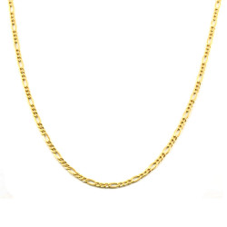 Cadena semi maciza con eslabón calabrote fabricada en oro de 18kts. Mide 50 centímetros de larga y 4 milímetros de ancha. Su peso es de 8.9 gramos.