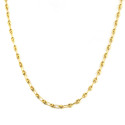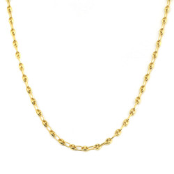 Cadena semi maciza con eslabón calabrote fabricada en oro de 18kts. Mide 60 centímetros de larga y 4 milímetros de ancha. Su peso es de 8.9 gramos.