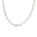 Cadena barbada fabricada en plata de ley. Su peso es de 15,7 gramos, mide 70 cm y tiene un ancho de 6 milímetros.