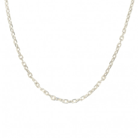 Cadena fabricada en plata de primera ley forzada. Hace un ancho de 3.5 milímetros y un largo de largo de 60 centímetros. Su peso es de 15.4 gramos y su cierre es de mosquetón.
