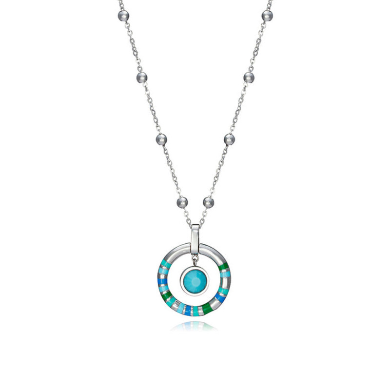 Atrévete a brillar con este collar de acero con anilla en rayas de esmalte en tonos azules. Con un diseño exclusivo y materiales de alta calidad, esta joya es una adición imprescindible a tu colección. En Viceroy, cada joya está hecha para resaltar tu personalidad y estilo único, proporcionando una belleza duradera que siempre será apreciada. Largo 42 + 3 cm