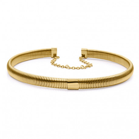 Collar de acero con acabado IP dorado de la colección Laura Escanes para mujer, que destaca por su diseño elegante y versátil. Esta pieza es perfecta para añadir un toque de sofisticación y brillo sutil a cualquier look, desde el día a día hasta ocasiones especiales.