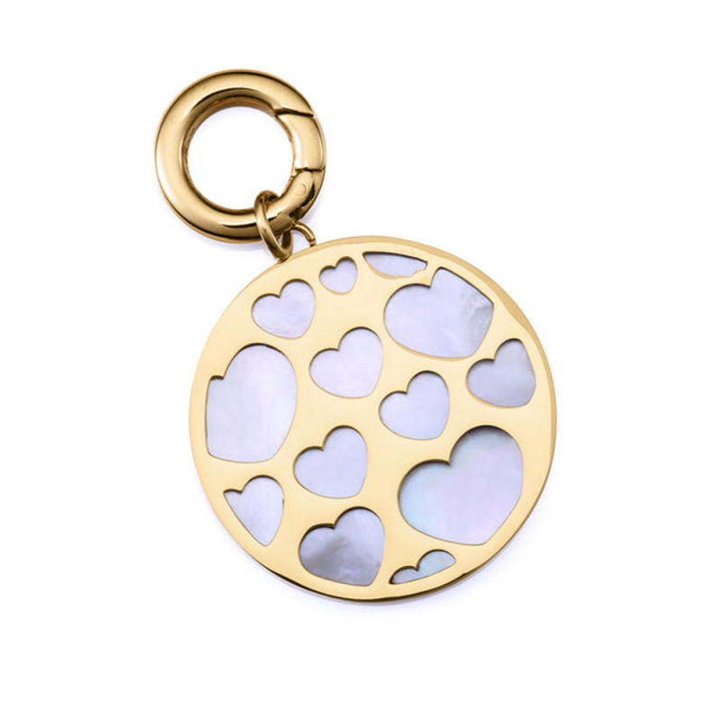 Motivo colgante de acero con acabado IP dorado de la colección Laura Escanes para mujer, adornado con una delicada pieza de madre perla. Con un largo de 5 cm, este colgante destaca por su diseño sofisticado y su brillo natural, aportando un toque de elegancia y distinción a cualquier conjunto. Largo 5 cm.