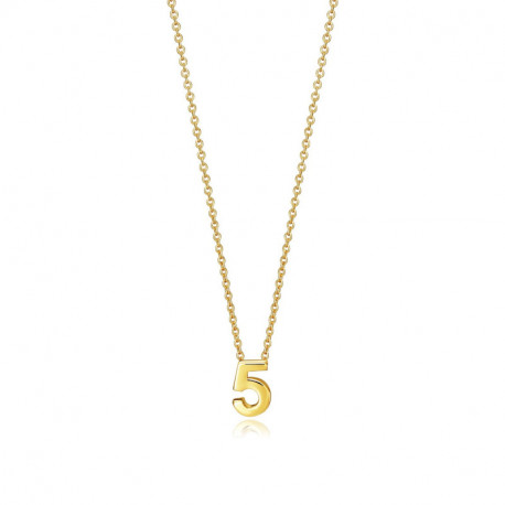 Collar Viceroy Plata Mujer Número "5" 61041C000-05. Colección Números. Es un collar original de la marca Viceroy, para mujer. Está realizado en plata de ley, 925mls con baño de color dorado, y tiene un cierre de seguridad de tipo reasa. Mide 43+2.5 centímetros regulables gracias a su cierre.