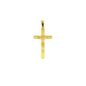 Cruz fabricada en oro amarillo de 18 kts , esta cruz es plana con acabado brillante, mide 13 milímetros de ancho por 25 de alto incluyendo la valía y su peso es de 0.6 gramos.