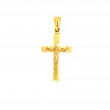 Cruz fabricada en oro amarillo de 18 kts , esta cruz es plana con acabado brillante, mide 18 milímetros de ancho por 39 de alto incluyendo la valía y su peso es de 3 gramos.