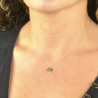 Colgante y cadena de oro 18 Kts, el colgante es redondo con la inicial A calada en su parte central y circonitas en su parte inferior, hace un alto de 14 milímetros con la anilla. En caso de no encontrar su inicial indiquenoslo en el apartado PERSONALIZACION DEL PRODUCTO.
