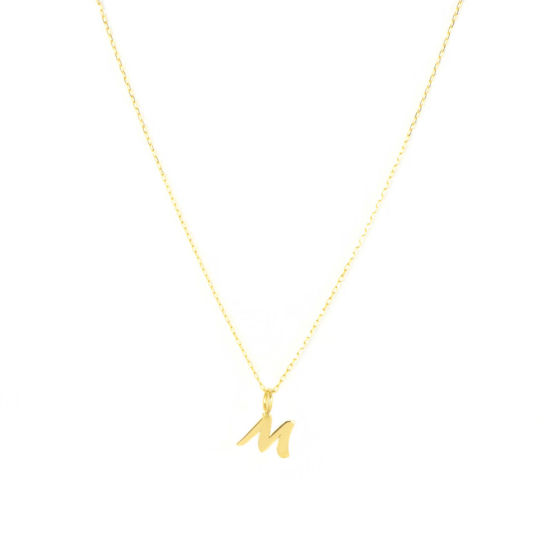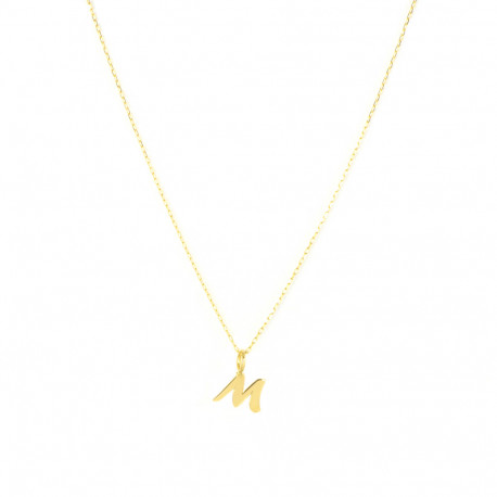 Colgante y cadena de oro 18 Kts, el colgante forma una bonita inicial M y mide 11.5 milímetros. En caso de no encontrar su inicial indiquenoslo en el apartado PERSONALIZACION DEL PRODUCTO.