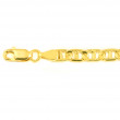 Pulsera oro amarillo de 18 kilates con placa de 30 milímetros de larga y 6 de ancha en la parte central, la pulsera es modelo ancla, mide 20.5 centímetros de larga y su cierre es de mosquetón. Su peso es de 5.8 gramos.