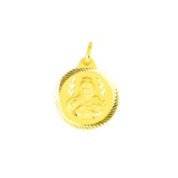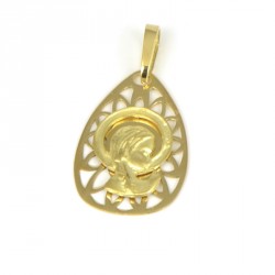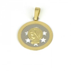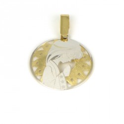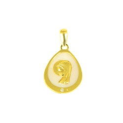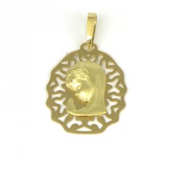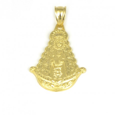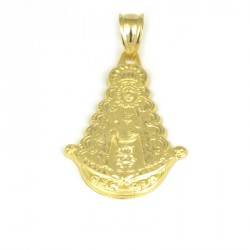 Medalla de oro virgen del Rocío fabricada en oro amarillo de 18 klts. Mide 18 milímetros de ancha y 32 de alta incluyendo la anilla. Su peso es de 2.7 gramos.