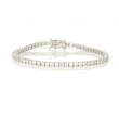 pulsera oro blanco de 18 kilates. 4 quilates de diamantes engastados con 4 garras cada uno forman esta pulsera ribier de elegante diseño . Hace 18 centímetros de largo por 2.5 milímetros de ancho, pesa 8 gramos y su cierre es de cajón con un cierre de ocho a cada lado.