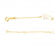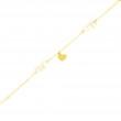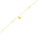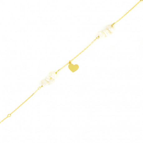 Bonita pulsera fabricada en oro de 18 kilates con seis perlas barrocas naturales y un corazón colgando en el centro. Mide 7 milímetros de ancha en su parte mas ancha y 17 centímetros de larga y dispone de una segunda anilla de cierre para adaptar el tamaño, pesa 1.6 gramos y su cierre es de reasa.