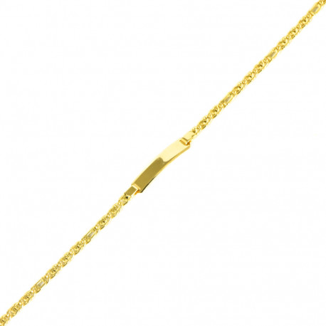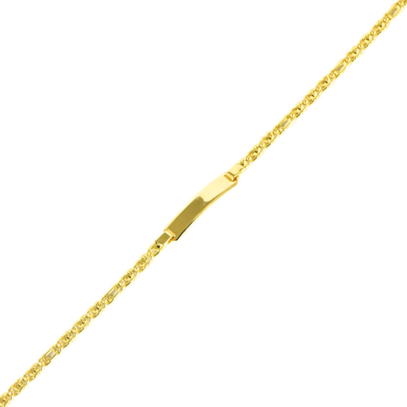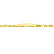 No olvide guardar su personalización para poder añadir al carritoPulsera fabricada en oro 18 kilates con placa en la parte central y diseño italiano, mide 21 centímetros de larga y 5.5 milímetros de ancha, su cierre es de mosquetón y pesa 4.7 gramos.