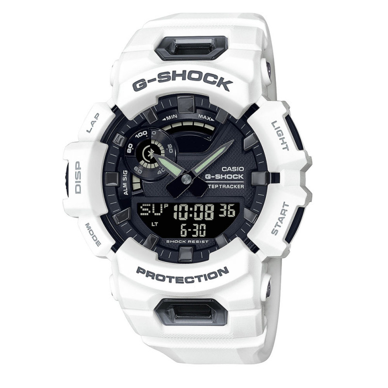 El GBA-900-7AER es un reloj deportivo blanco y negro. Este reloj es resistente al agua hasta 200 metros de profundidad, lo que le hace ideal para actividades acuáticas. Su tamaño es cómodo 45 mm, lo que le convierte en un accesorio versátil y funcional. Además, cuenta con funciones de seguimiento de actividad y conectividad Bluetooth.