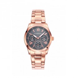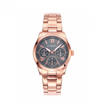 Reloj Viceroy para señora de la colección Chic 4221293 chapado en oro rosa con esfera gris y números y detalles del interior en rosa. Este modelo es sumergible a 5 Atm. Con correa y caja de acero. Su maquinaria es analógica con multifunciones.