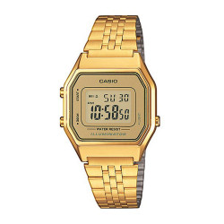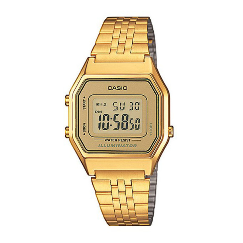 Reloj marca Casio con una caja con diámetro de 33 mm y correa de color dorado. Resistente al agua. Viene con 2 años de garantía.
